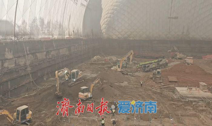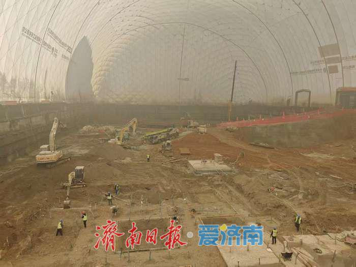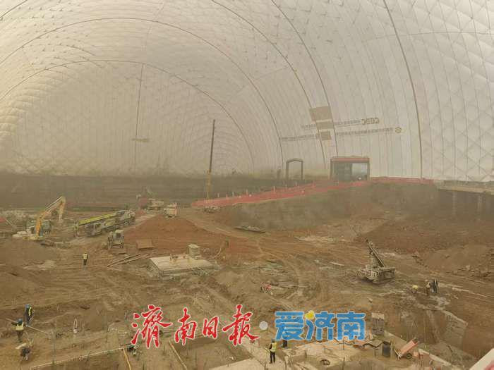 14日,记者在现场看到,大白膜内正热火朝天地施工。寒冷的天气与大雪对工程、工地并没带来影响。基坑气膜的优越性在大雪天气显现无疑。现场负责人告诉记者,气膜的密闭性很好,除了隔绝施工噪声,也隔绝了雨雪天气,大大减少了恶劣天气对施工的影响,让施工不再受天气制约。即使大雪纷飞的时候,基坑内仍然能正常作业。现在雪开始融化了,但由于气膜的隔绝,这里不用担心雪融带来的施工不利,因此,仍可以继续正常作业。
